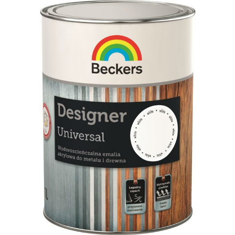 Emalia Beckers Designer Universal ma szerokie możliwości stosowania. Można nią malować powierzchnie drewniane, drewnopochodne, jak również metalowe, znajdujące się zarówno wewnątrz, jak i na zewnątrz pomieszczeń. Emalia Beckers Designer Universal jest polecana między innymi do malowania mebli, drzwi, kaloryferów, okien, listew, detali wykończeniowych czy mebli ogrodowych.