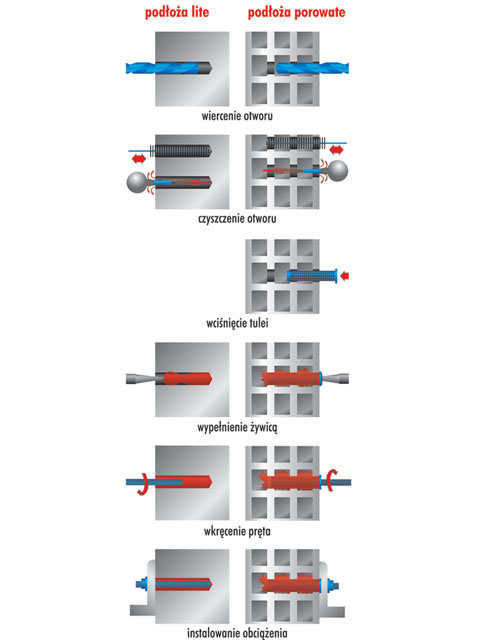 Wybranie właściwego systemu kotwiącego gwarantuje stabilność i wytrzymałość łączenia. Kotwy chemiczne dzięki swoim właściwościom pozwalają na montaż w sytuacjach, gdy konieczne jest osadzanie bez naprężeń montażowych. Wiązanie oparte na reakcji chemicznej gwarantuje mocne kotwienie we wszystkich rodzajach materiałów, umożliwiając również mocowanie w bliskiej odległości od krawędzi. Ten typ kotwy jest odpowiedni także przy konstrukcjach wymagających łączenia na całej powierzchni w stosunkowo niewielkiej odległości.