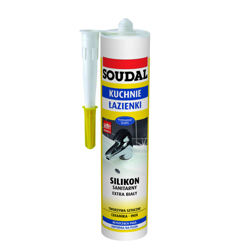 Gama silikonów sanitarnych Soudal została poszerzona o nowy produkt o podwyższonej odporności na działanie wilgoci, grzybów i pleśni - Silikon Sanitarny Extra Biały. Ten wyjątkowy uszczelniacz, pomimo iż należy do silikonów o utwardzaniu kwaśnym charakteryzuje się doskonałą przyczepnością nie tylko do typowych podłoży sanitarnych, np. glazury, ceramiki łazienkowej i szkła, ale również do akrylu i PCV. Dzięki czemu sprawdzi się także przy uszczelnieniach wokół wanien, brodzików oraz kabin prysznicowych wykonanych z tworzyw sztucznych.