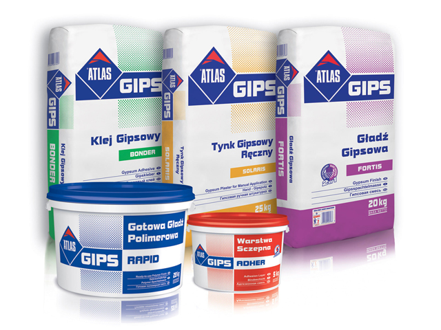 Atlas wprowadził na rynek nową linię produktów gipsowych ATLAS GIPS. Dają one możliwość kompleksowego przeprowadzania remontów wewnątrz pomieszczeń. Linia składa się z pięciu wyrobów: gładzi gipsowej FORTIS, gotowej gładzi polimerowej RAPID, tynku gipsowego ręcznego SOLARIS, kleju gipsowego BONDER oraz warstwy sczepnej ADHER.