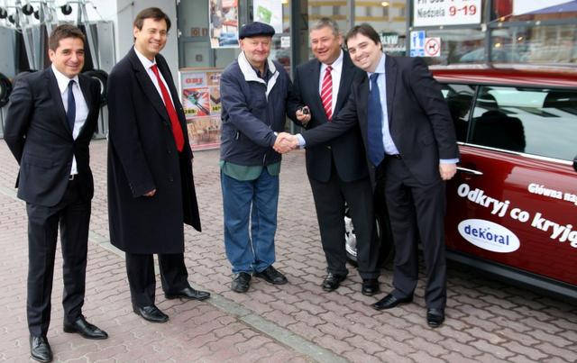 Nagrodę główną w Loterii „Odkryj co kryją farby" - atrakcyjny samochód osobowy MINI ONE - wygrał Pan Stefan Pusz z Warszawy. Kluczyki do swojego nowego samochodu Pan Stefan odebrał z rąk przedstawicieli organizatora Loterii.