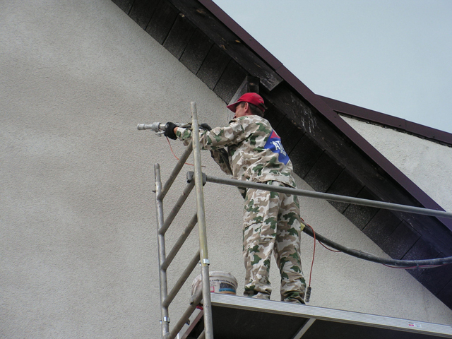 W ostatnich latach w ociepleniach mechanizacja zaczyna powoli wypierać prace ręczne. Dotychczas tynki cienkowarstwowe nakładane były ręcznie przy użyciu pac stalowych i plastikowych. Prace te zabierają dużo czasu i są bardzo pracochłonne. Przypomnijmy, najpierw należy nanieść tynk przy pomocy gładkiej pacy ze stali nierdzewnej. Nadmiar materiału należy ściągnąć z powrotem do wiadra i przemieszać. Świeżo naniesioną masę należy zafakturować przy użyciu pacy z tworzywa sztucznego.