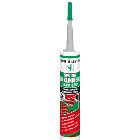 Spoina do klinkieru i kamienia firmy Den Braven jest drobnoziarnistą fugą polimerową, stworzoną specjalnie z myślą o cegłach klinkierowych. Nie zawiera ona cementu ani wapnia, dzięki czemu nie powoduje tworzenia się wykwitów oraz nie przebarwia klinkieru, co mogłoby negatywnie wpłynąć na estetykę budynku. Dzięki swojej formule i konsystencji jest gotowa do użycia od razu po otwarciu kartusza i nie wymaga żadnego dodatkowego mieszania czy przygotowania, co pozwala znacznie uprościć i skrócić czas jej nakładania. Jej bardzo duża przyczepność do krawędzi cegieł sprawia, że można ją stosować zarówno w przypadku powierzchni poziomych jak i pionowych, dzięki czemu nie musimy się martwić, że nasza świeżo położona fuga spłynie.