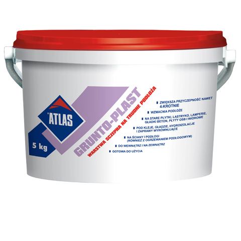 Atlas Grunto-Plast to uniwersalny super grunt na trudne podłoża. Umożliwia trwałe przyklejanie płytek na betonie, lastryko, lamperiach, starych okładzinach ceramicznych, a nawet na płytach drewnopochodnych (w tym płyty OSB). Jednocześnie można go stosować jako grunt na płyty g-k, tynki gipsowe, cementowe, nieotynkowane ściany z wszelkiego rodzaju cegieł, bloczków, pustaków, na wylewki betonowe i anhydrytowe, a także pod hydroizolacje.