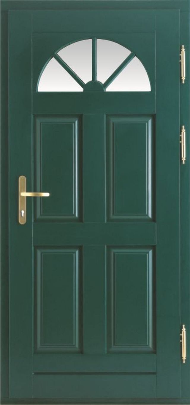 - Mediolan. Drzwi dostępne są m.in. w barwach stonowanej, ciemnej zieleni, doskonale wkomponują się one np. w modernistyczny lub minimalistyczny wystrój. Niepowtarzalności dodaje im niewielka szyba w kształcie wachlarza.