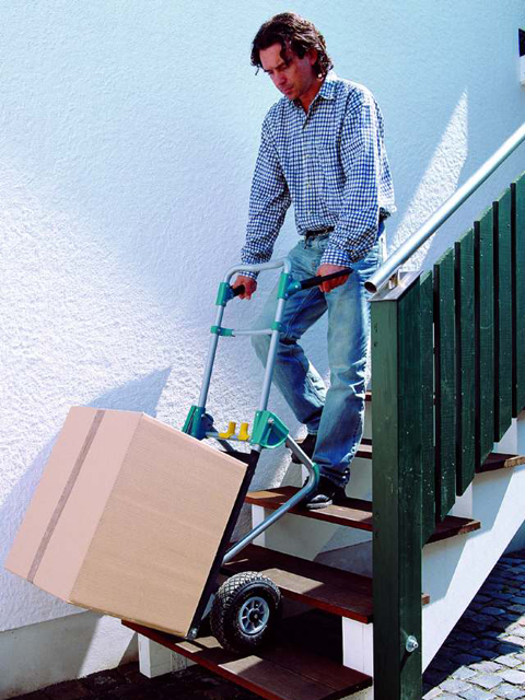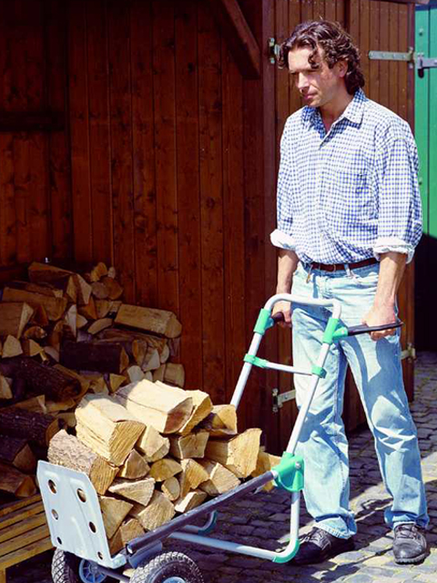 - Wózek TS 1000 - może pełnić funkcję zarówno wózka, jak i taczki. Kiedy używamy go jako wózka ma on ładowność 150 kg, a dodatkowo posiada różne możliwości chwytu, które pozwalają na wygodne nabieranie i transportowanie ładunków. Dla komfortu użytkowania rękojeść została wyposażona w nakładki ochronne, które umożliwiają precyzyjny i bezpieczny chwyt wózka podczas transportu. Ładowność wózka TS 1000 wzrasta do 200 kg, kiedy będziemy używać go jako taczki. Dodatkowo, niewielka wysokość wózka ułatwia załadunek. Zaokrąglone poprzeczki i płyta tylna gwarantują bezpieczny transport zaokrąglonych przedmiotów. Z kolei składana przednia łopata umożliwia przewożenie długich elementów. Warto podkreślić, że opony wypełnione powietrzem poprawiają komfort użytkowania wózka. Co więcej, model TS 1000 posiada ciekawą i przydatną funkcję regulowanego kąta nachylenia, która pozwala na pewny i bezpieczny transport ładunku po schodach. Dzięki temu rozwiązaniu transport mebli ogrodowych, drewna do kominka, worków z korą czy też kartonów będzie prosty i przyjemny.